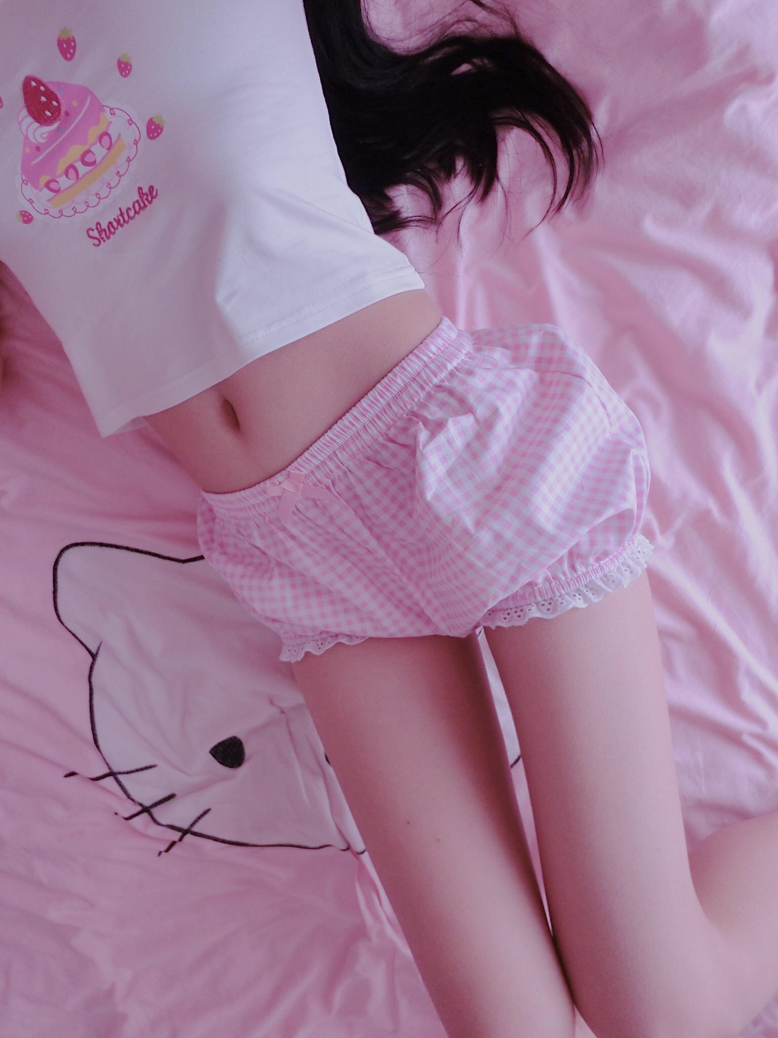 萌白酱福利—粉睡衣